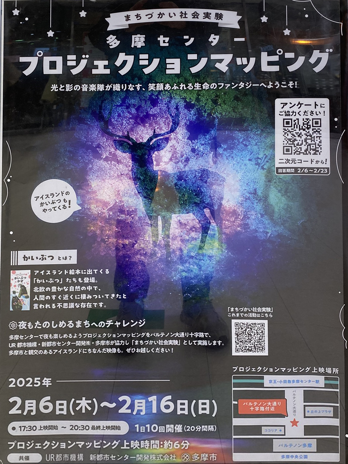 多摩センター駅南口にてプロジェクションマッピング令和7年2月16日まで